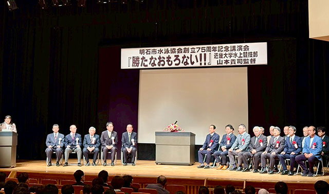 昨年、明石市水泳協会は創立75周年記念行事に取り組み、記念講演会、記念式典を盛会に終えることができました。