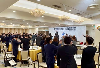 式典に続いての祝賀会では、石丸名誉会長による乾杯の発声により、80名の列席者が世代を越えて、様々な交流をはかりながらの懇親会となりました。